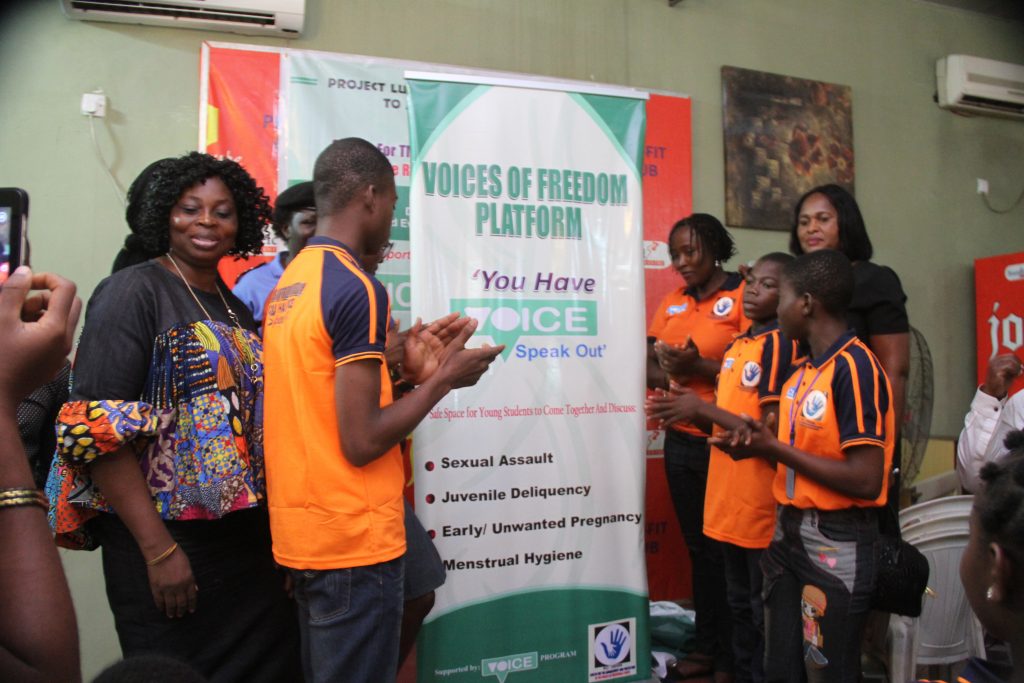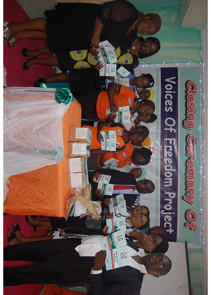 In 2017, we got a grant from Oxfam to implement the ‘Voices of Freedom ’project targeting young people in secondary schools in local communities of Lagos State. Through this project, we established the ‘Voices of Freedom’ club in 2 secondary schools in Ikotun part of Lagos State, where with the support and supervision of school authorities, we meet to discuss key issues affecting young people.
