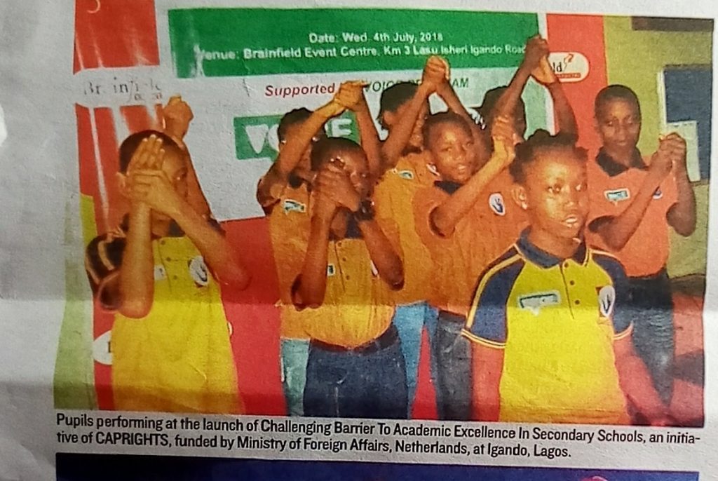 Voices of freedom project targeted poor community schools in remote part of Lagos State because we believes that they have been left behind in development activities since most interventions by donor and government take place in modern areas. CAPRIGHTS also identified the following social challenges that militate against the academic performance of students within the secondary education system in Lagos State: